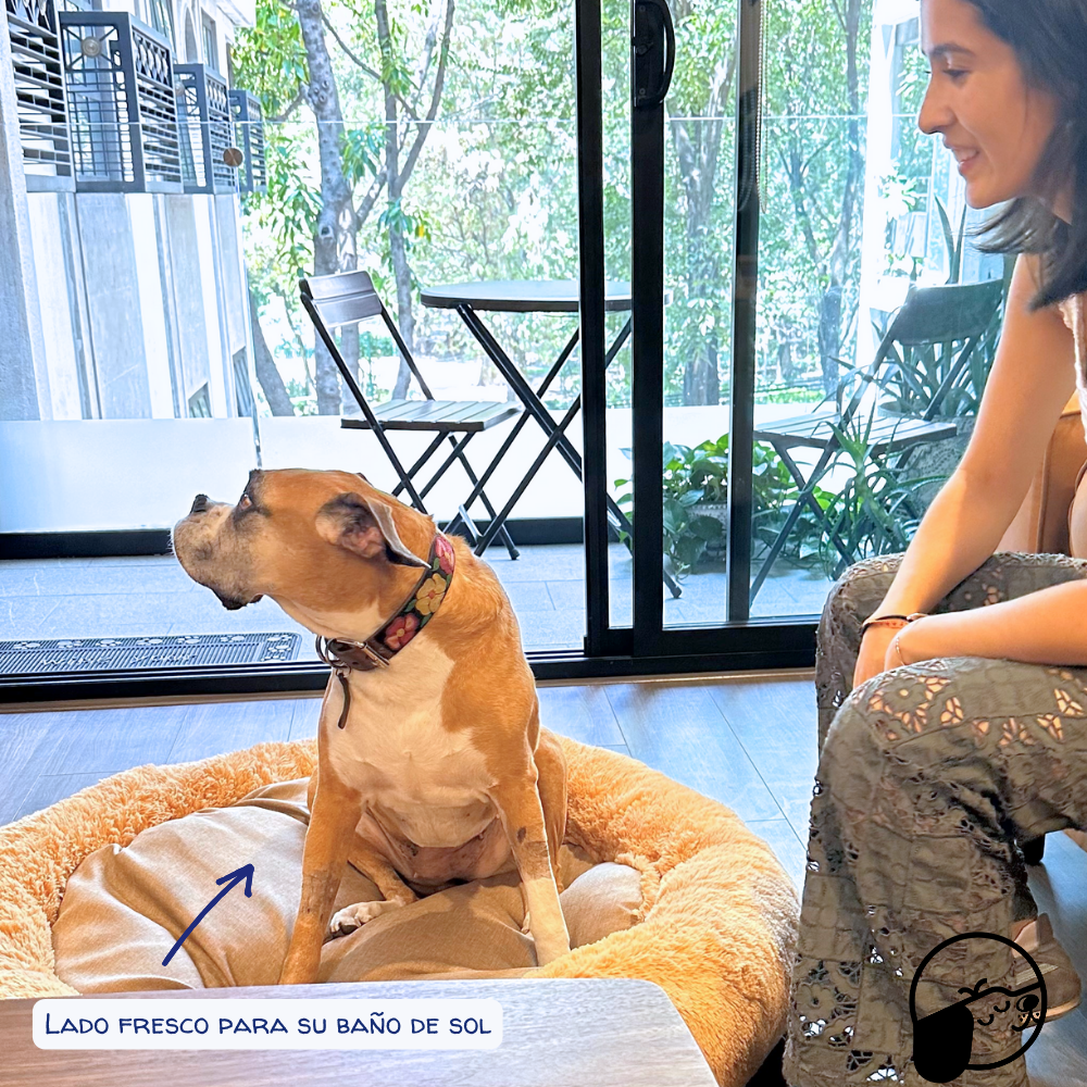 Camita para el calor: El reverso de su cojín está hecho de una tela super fresca pero resistente.